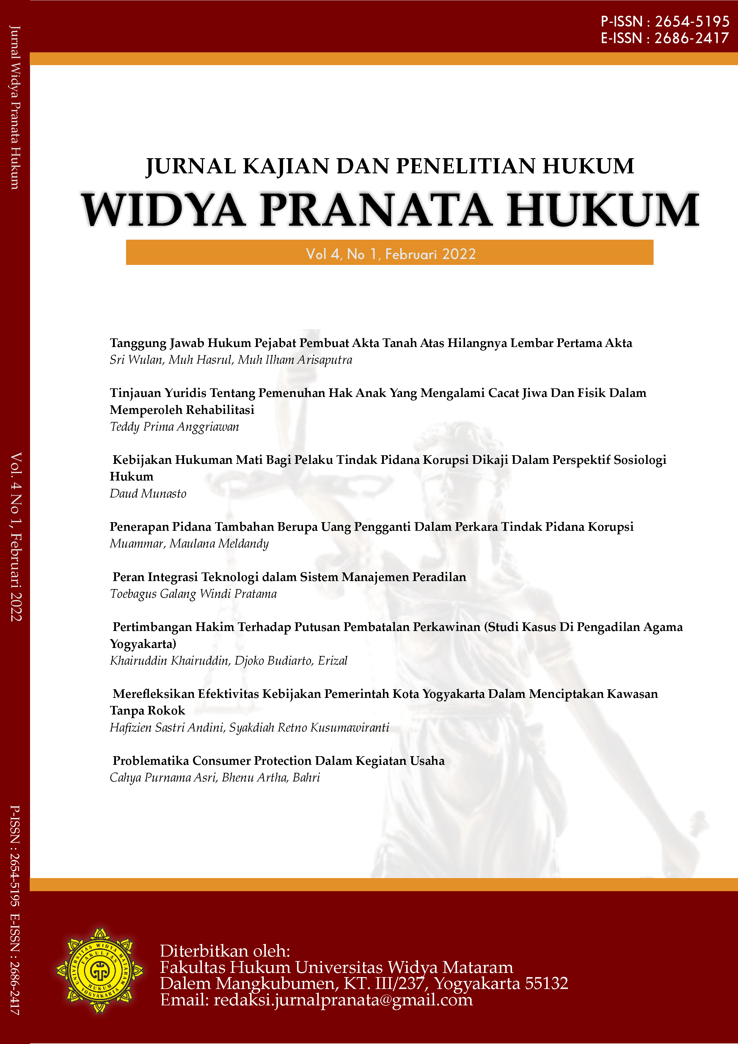 WIDYA PRANATA HUKUM: JURNAL KAJIAN DAN PENELITIAN HUKUM